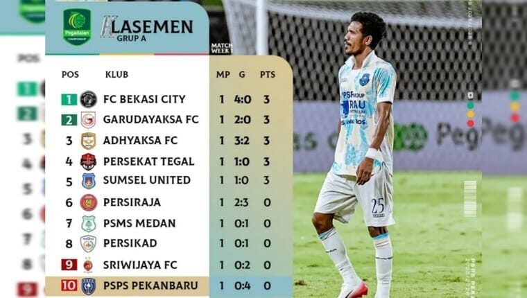 Sementara itu, di papan atas klasemen, FC Bekasi City melaju kencang usai menumbangkan PSPS. Posisi kedua ditempati Garudayaksa FC yang menang 2-0, sedangkan Adhyaksa FC bertengger di peringkat ketiga setelah mengalahkan lawannya dengan skor 3-2.