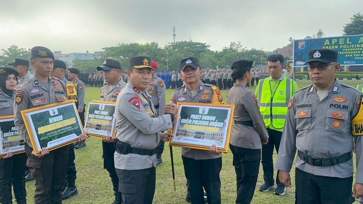 PEKANBARU – Kepolisian Daerah (Polda) Riau menunjukkan komitmennya dalam mendukung pelestarian lingkungan hidup dan penguatan keamanan berbasis masyarakat melalui gelaran Apel Apresiasi Green Policing Award 2025, yang berlangsung meriah di halaman Mapolda Riau, Rabu (8/10/2025).