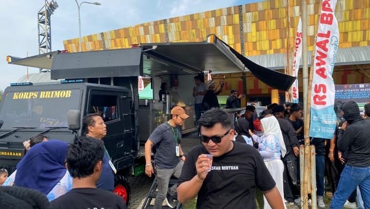 Satuan Brimob Polda Riau mendirikan dapur lapangan untuk memasak dan membagikan makanan kepada masyarakat serta suporter yang hadir menyaksikan pertandingan.