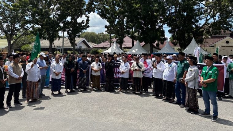 PEKANBARU – Ratusan anggota Himpunan Alumni Santri Lirboyo (HIMASAL) Provinsi Riau menggelar aksi damai dan doa bersama di depan Kantor Komisi Penyiaran Indonesia Daerah (KPID) Riau, Jalan Gajah Mada, Pekanbaru, Sabtu (18/10/2025) pagi.