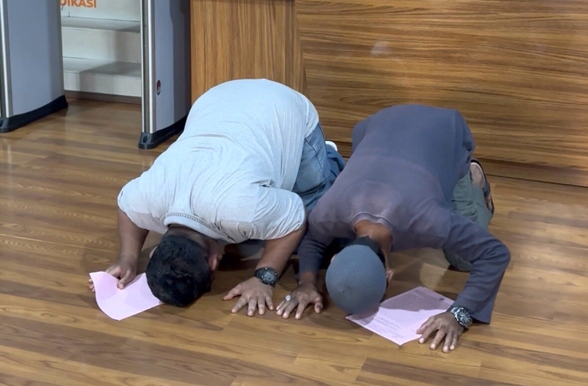 Usai mendengar pembacaan keputusan, kedua tersangka tak kuasa menahan tangis dan langsung melakukan sujud syukur di hadapan para jaksa. Beberapa pegawai kejaksaan yang hadir tampak ikut terharu melihat momen tersebut.
