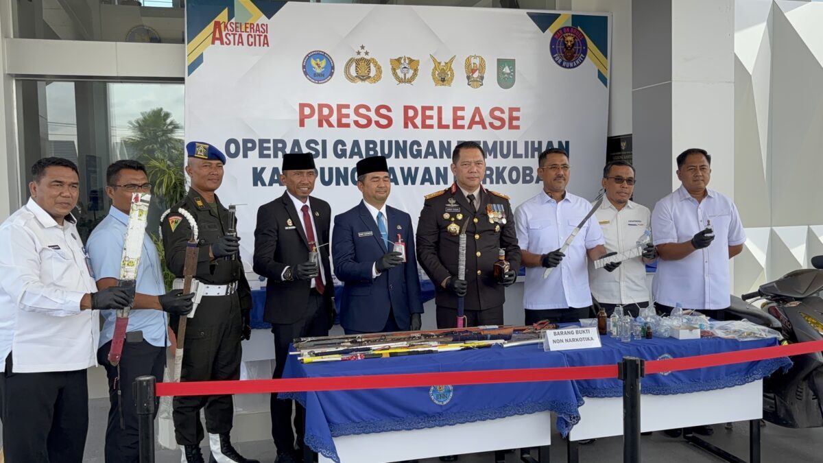 Langkah tegas sekaligus humanis itu ditegaskan Kepala BNNP Riau, Brigjen Pol Christ Reinhard Pusung, saat menggelar konferensi pers hasil kegiatan Pemulihan Kampung Narkoba yang dihadiri Dirnarkoba Polda Riau Kombes Pol Putu Yudha Prawira, Kasat Narkoba Polresta Pekanbaru, Kompol Bagus Faria serta tamu undangan lainnya, Senin (10/11/2025).