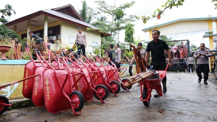 Adapun rincian bantuan tersebut meliputi 510 angkong, 653 cangkul, dan 654 sekop.