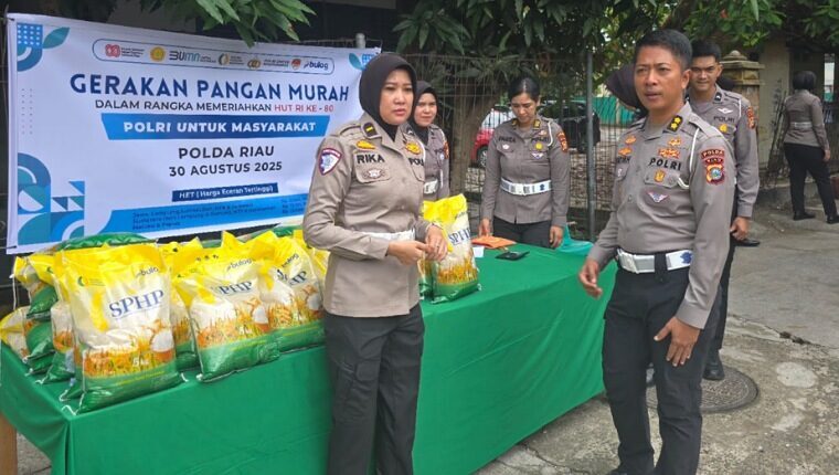 PEKANBARU – Direktorat Lalu Lintas (Ditlantas) Polda Riau melalui Subdit Regident menggelar Gerakan Pangan Murah (GPM) dengan menyalurkan beras murah bagi masyarakat Kota Pekanbaru, Sabtu (30/8/2025).